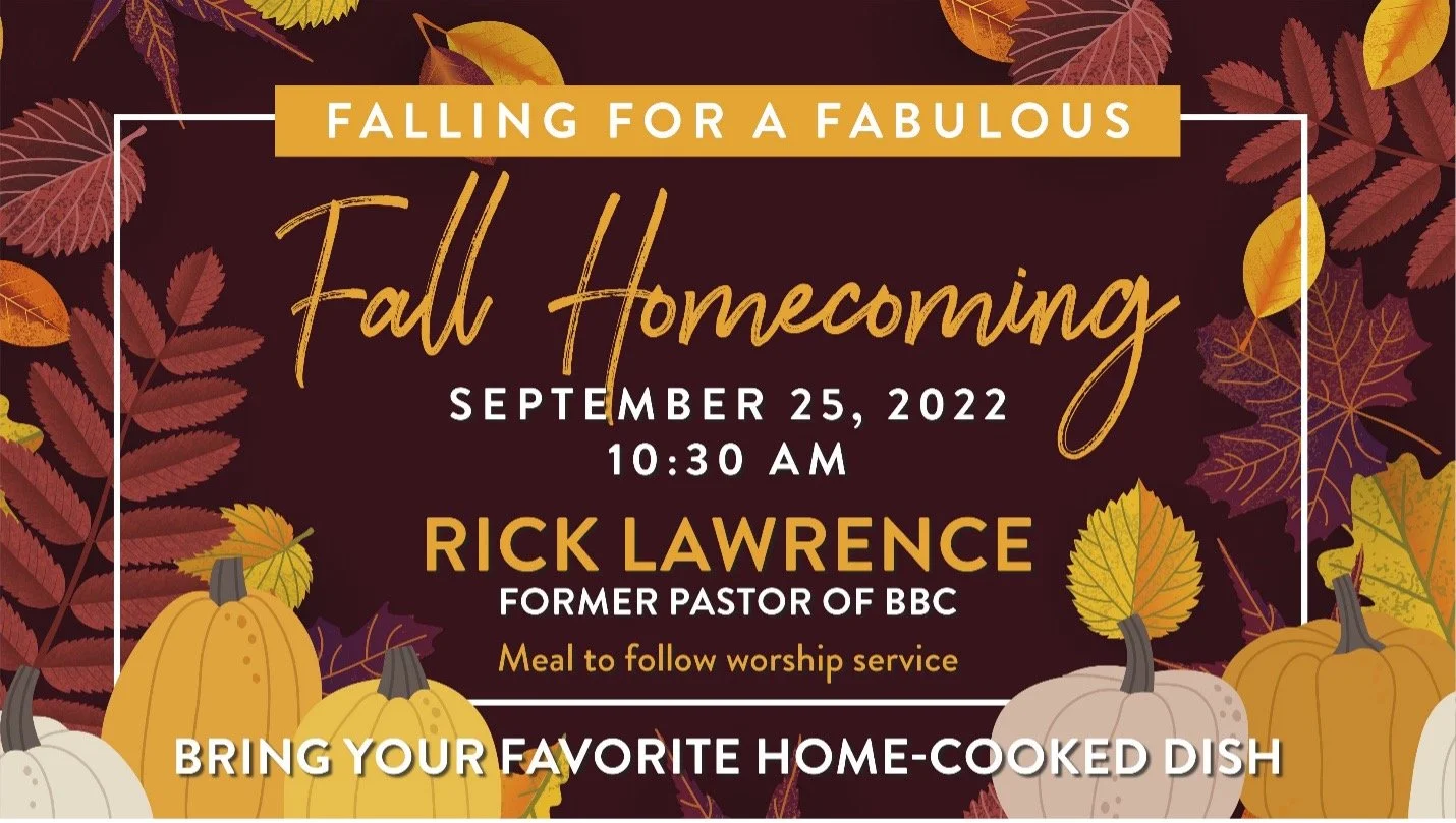 Homecoming Sunday, September 25, 2022 10:30 AM 1:00 PM Blackrock Baptist Church 96362 Blackrock Road Yulee, FL, 32097 United States (map) Google Calendar ICS